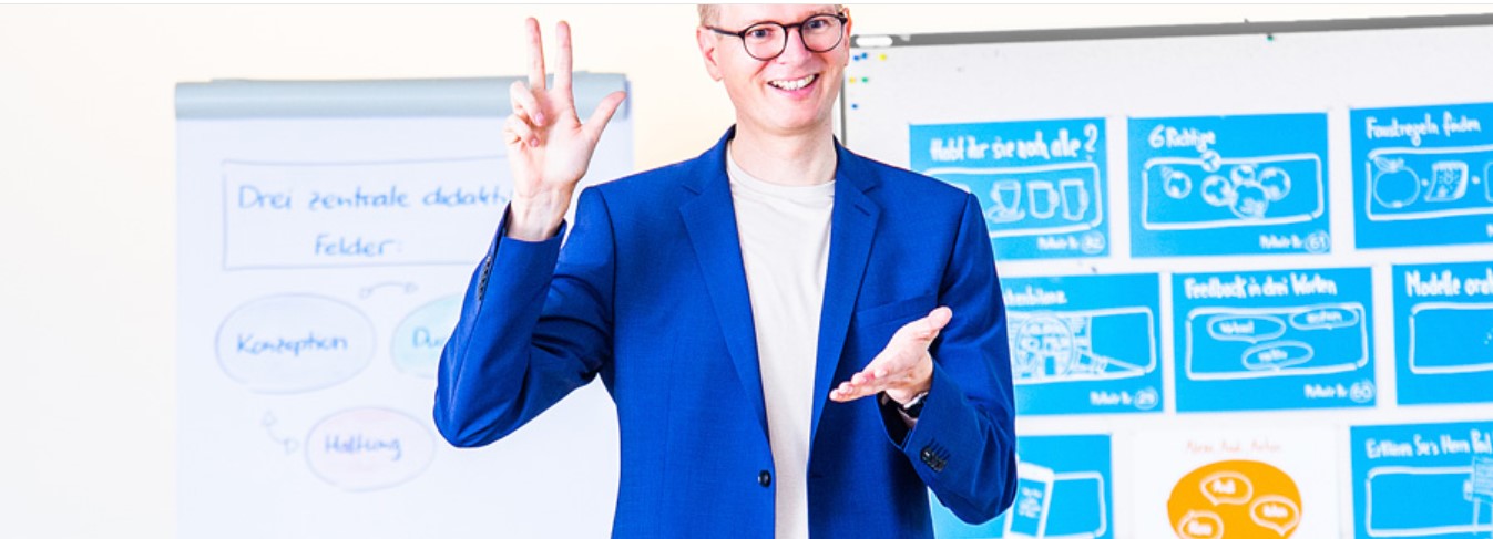 Hier stellt er eine Methode aus dem großartigen Kartenset „Kleiner Hebel – große Wirkung, 2×22 didaktische Kniffe“ vor.