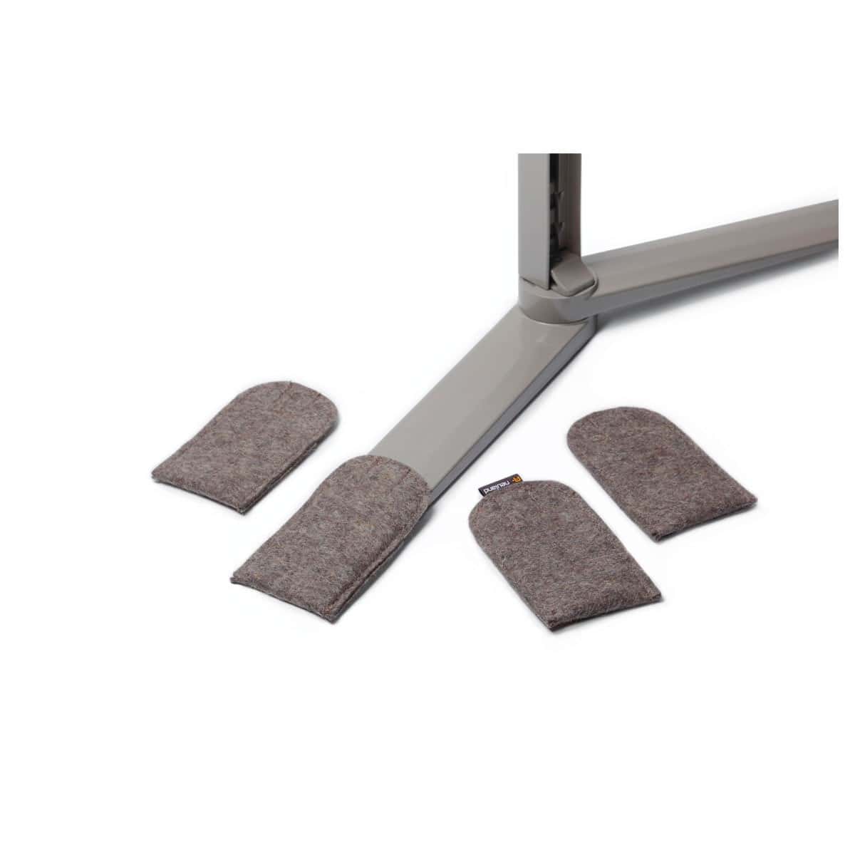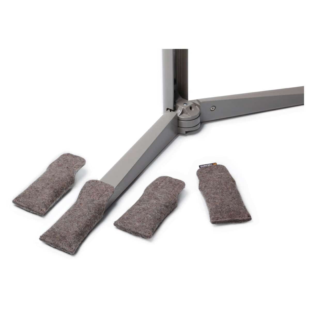 Einfach über die Pinwandfüße stülpen und mit Klettverschluss befestigen – schon sind Ihre (Parkett-)Böden vor Kratzern geschützt.