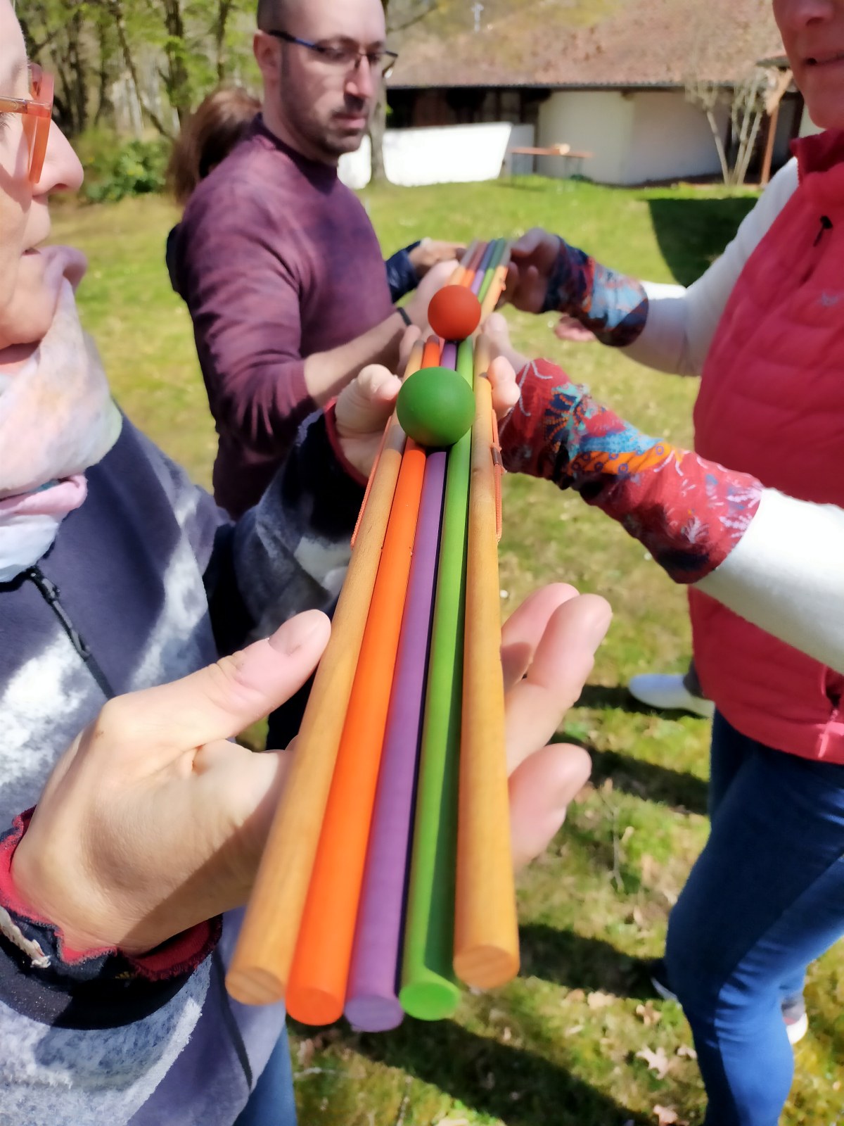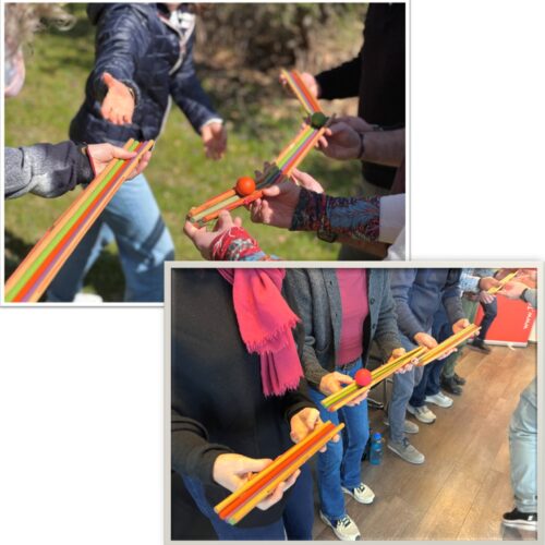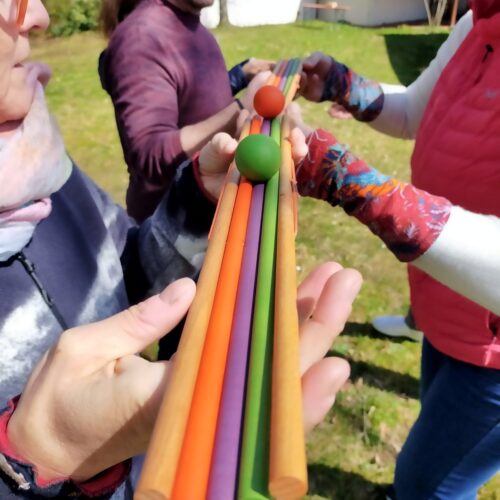 Bei diesem Set sind alle Spielvarianten der Single, Double und Team-Variante von BALLance möglich. Und zusätzlich können Sie mit diesem Set die Gruppendynamik herausfordern: Bilden Sie zuerst zwei Kreise und geben Sie zur Aufgabe, die Kugel einmal im Kreis rollen zu lassen. Entscheiden Sie selbst, welche Regeln Sie zusätzlich vereinbaren (und hier sind auch Regelverschärfungen pro Rundenlauf möglich).