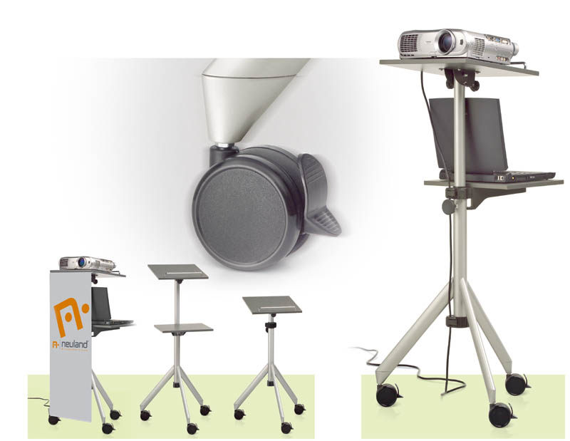Elegantes Projektionsmöbel für Beamer-Präsentationen. Dank höhenverstellbarer und stufenlos neigbarer Arbeitsplatte kann die Projektion optimal ausgerichtet werden.