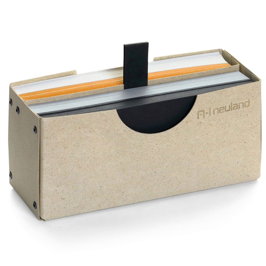 Die Kartenbox Novario® Eco ist die besonders umweltfreundliche Ausführung unserer Novario® Boxen. Sie bietet Raum für 2 x 250 Moderationskarten in verschiedenen Formen (Rechteck, Ovale Scheiben oder Rhombus) und kann durch die verstärkte Tragelasche am Mittelsteg bequem angehoben und transportiert werden.