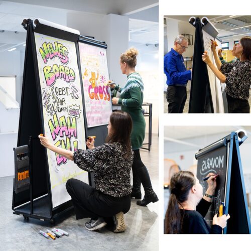 Movaris ist dein mobiles Tafelsystem auf Rollen.
